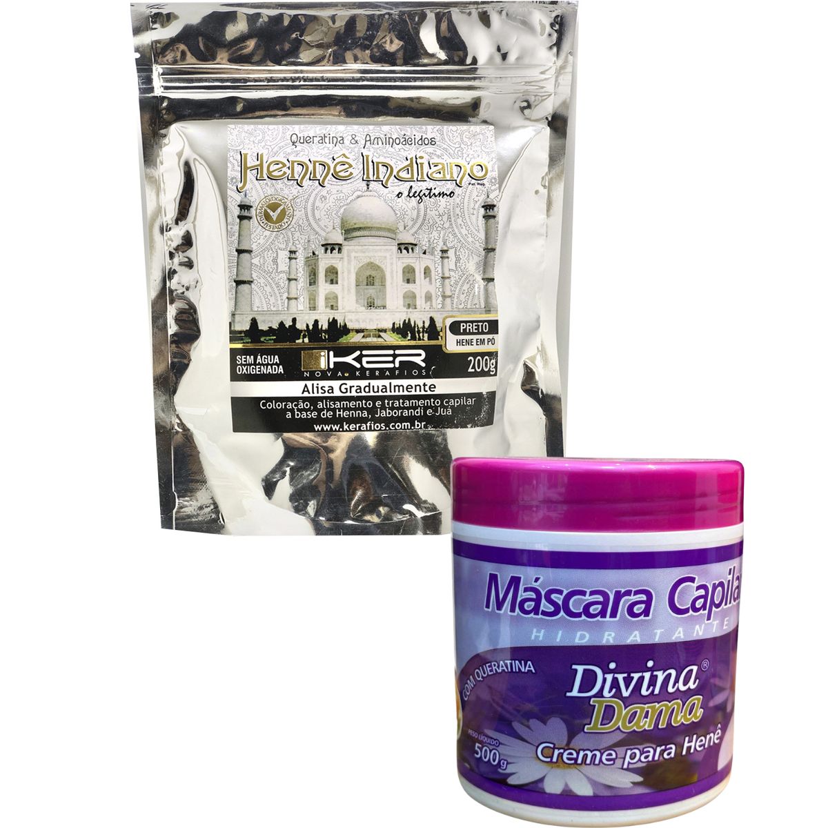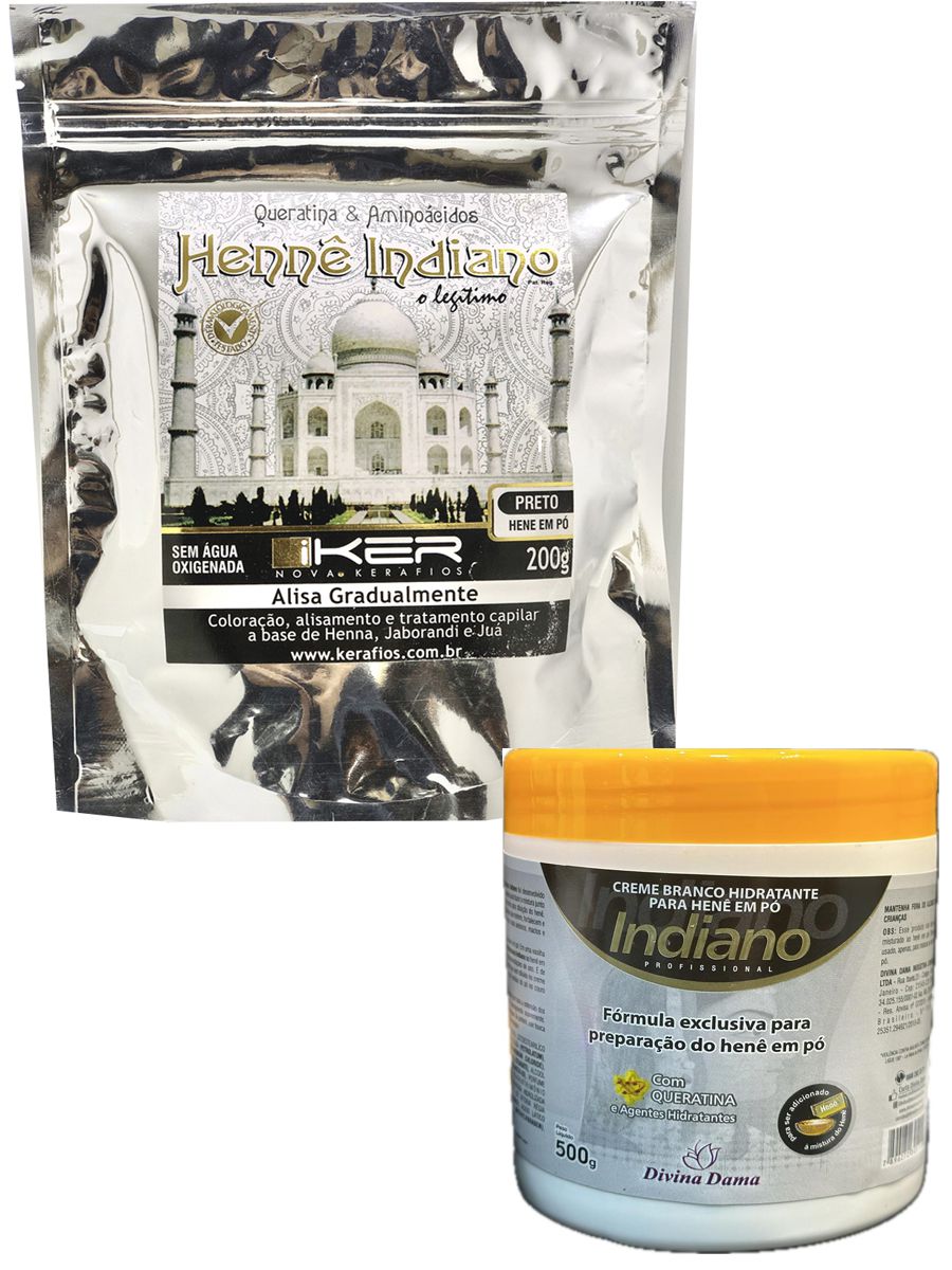 Adicionar sua colheres de sopa, de pó de cada embalagem á duas colheres de máscara de creme branco. Misturar em um recipiente plástico até obter uma massa cremosa e homogênea, aplique nos cabelos mecha à mecha; deixe agir de 1 a 2 horas com touca plastica. Terminado o tempo de ação, enxágue abundantemente até que a água saia completamente limpa, Aplique o Shampoo indiano massageando os cabelos, enxágue em seguida. Aplique o Hidratnte indiano massageando bem os cabelos e enxágue bem após 5 minutos.