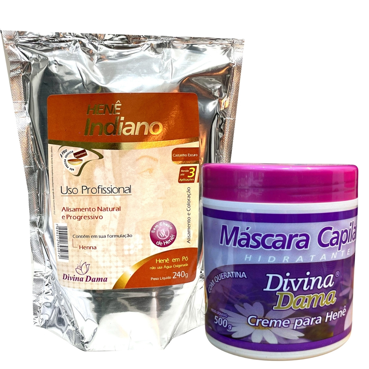 Henê Pó Indiano Divina Dama 240g Creme 500g Castanho Escuro